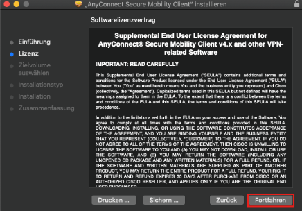 6. Starten Sie die heruntergeladene Datei, um die Installation zu starten. Klicken Sie anschließend auf "Fortfahren".