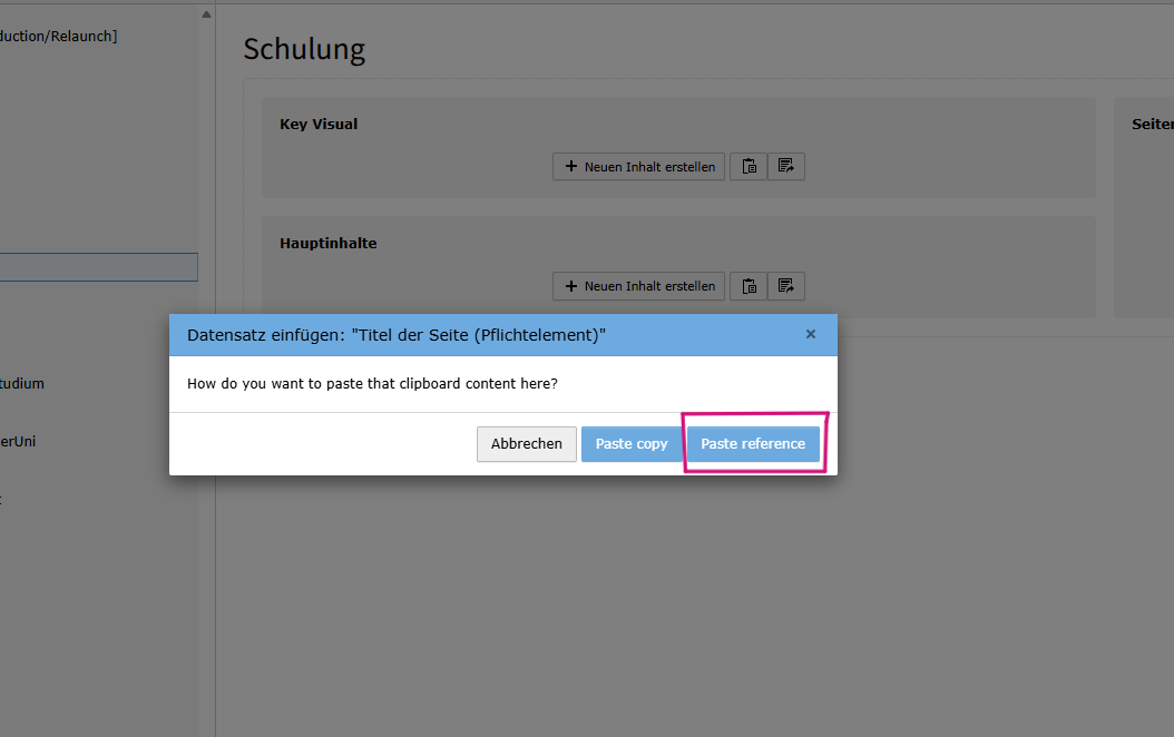 Nur berechtigte Ordner/Seiten verwenden: Referenzen dürfen nur auf Seiten erstellt werden, auf die Sie Zugriffsrechte haben.