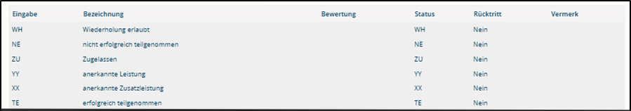 Bewertungsart: Eine Übersicht der zu nutzenden Bewertungsarten finden Sie hinter der Lupe in der gelben Zeile.