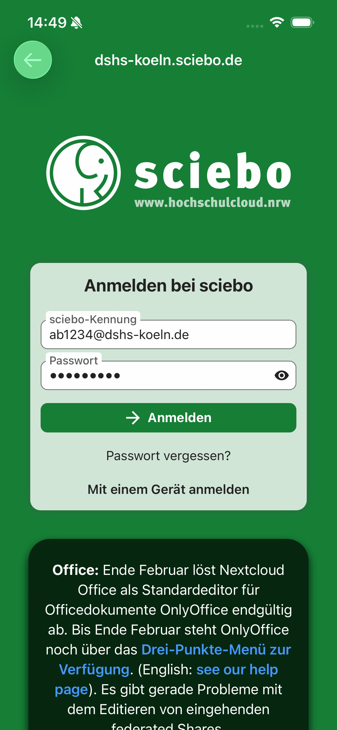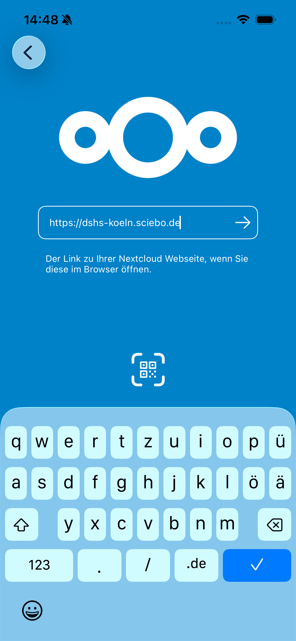 2. Geben Sie die Server URL https://dshs-koeln.sciebo.de ein: