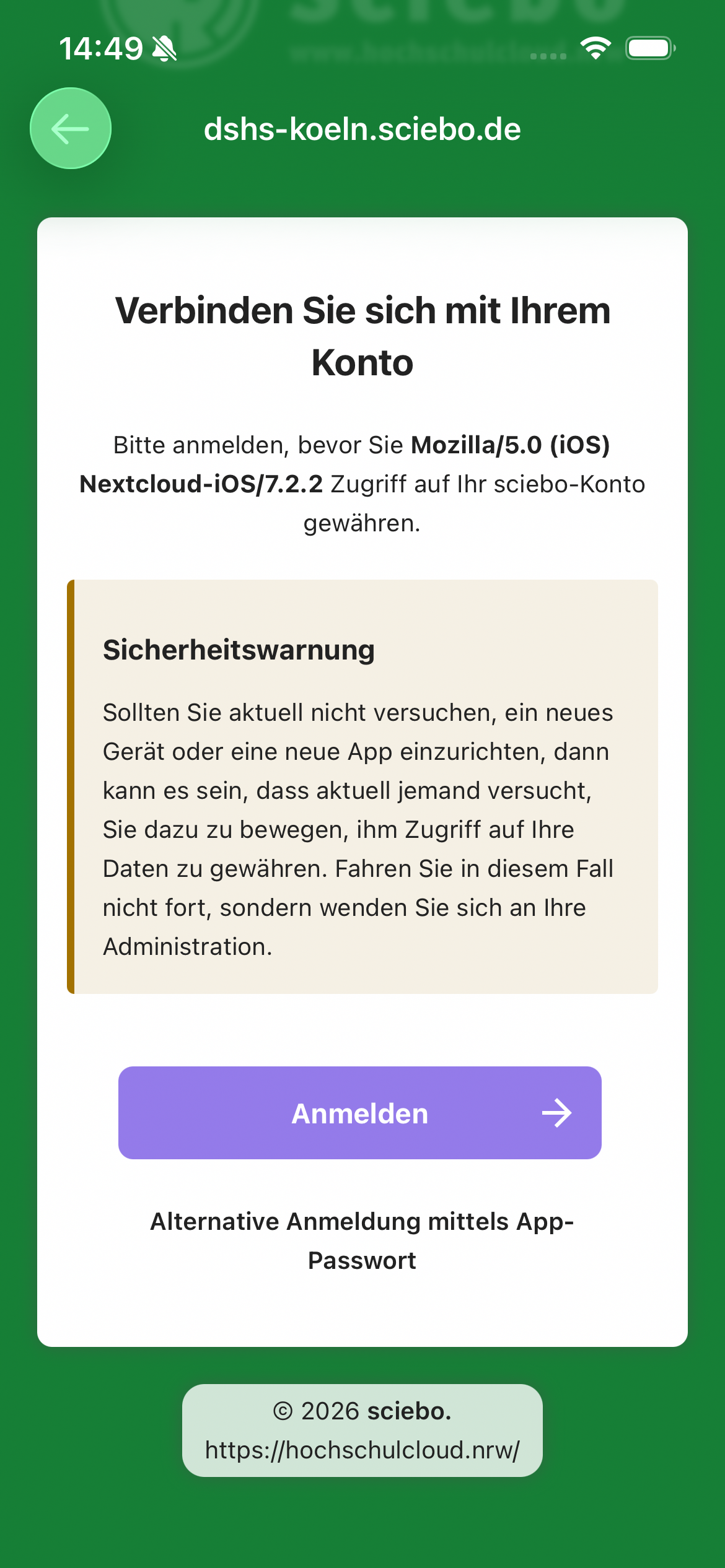 Richten Sie die Nextcloud App wie folgt ein: