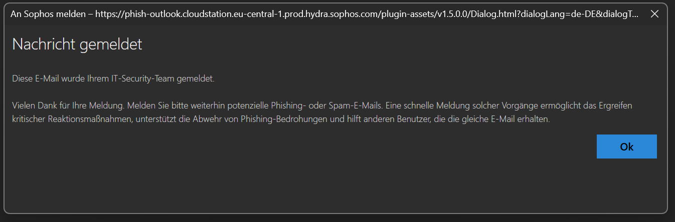 Sophos finden Sie hier: Sophos Phish Threat – Outlook Add-in: E-Mails melden