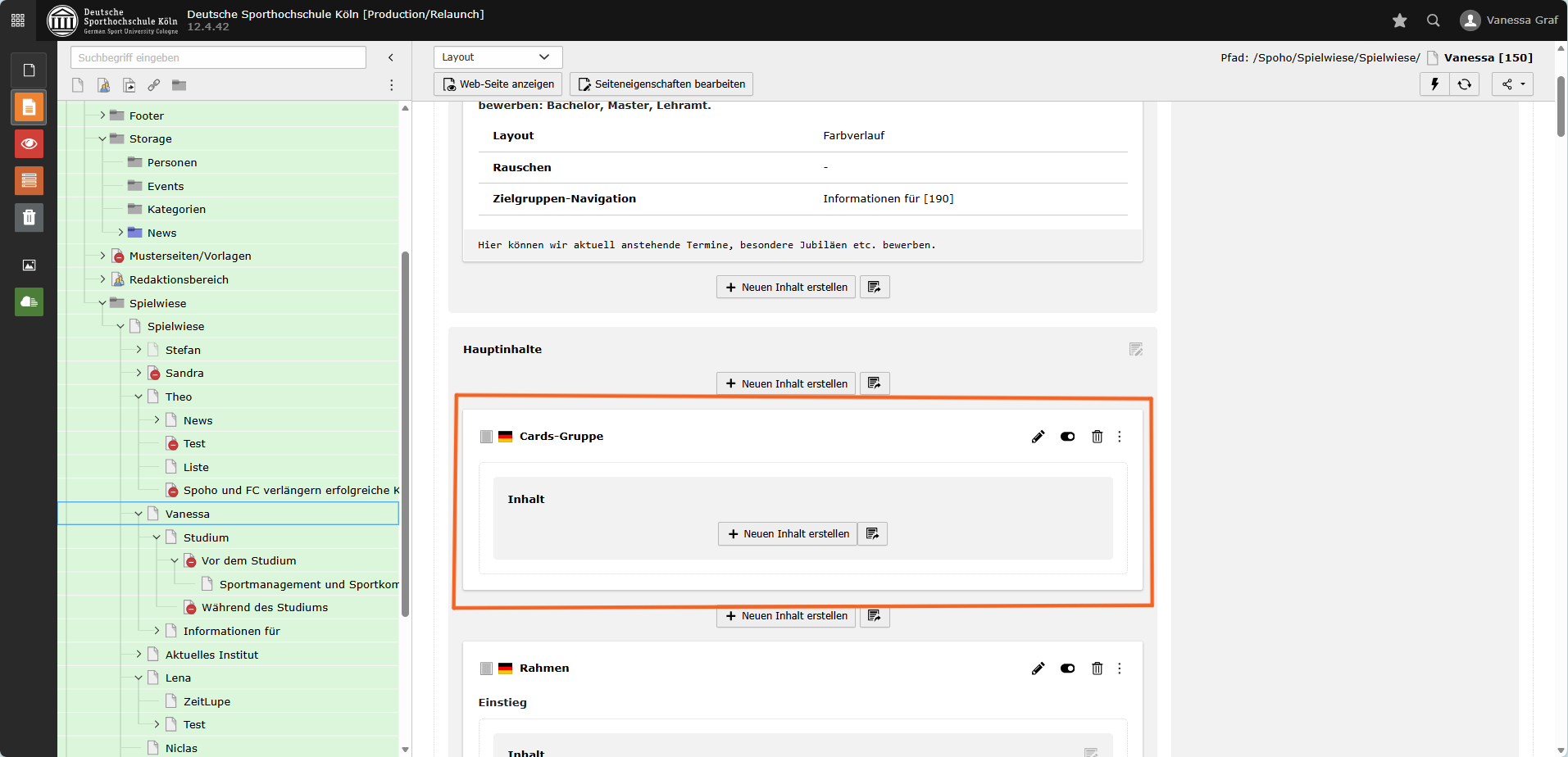 Alle Cards einer Gruppe folgen der gleichen Struktur