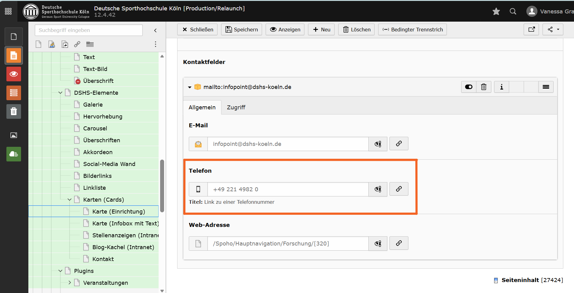 Folgende Felder können gepflegt werden: