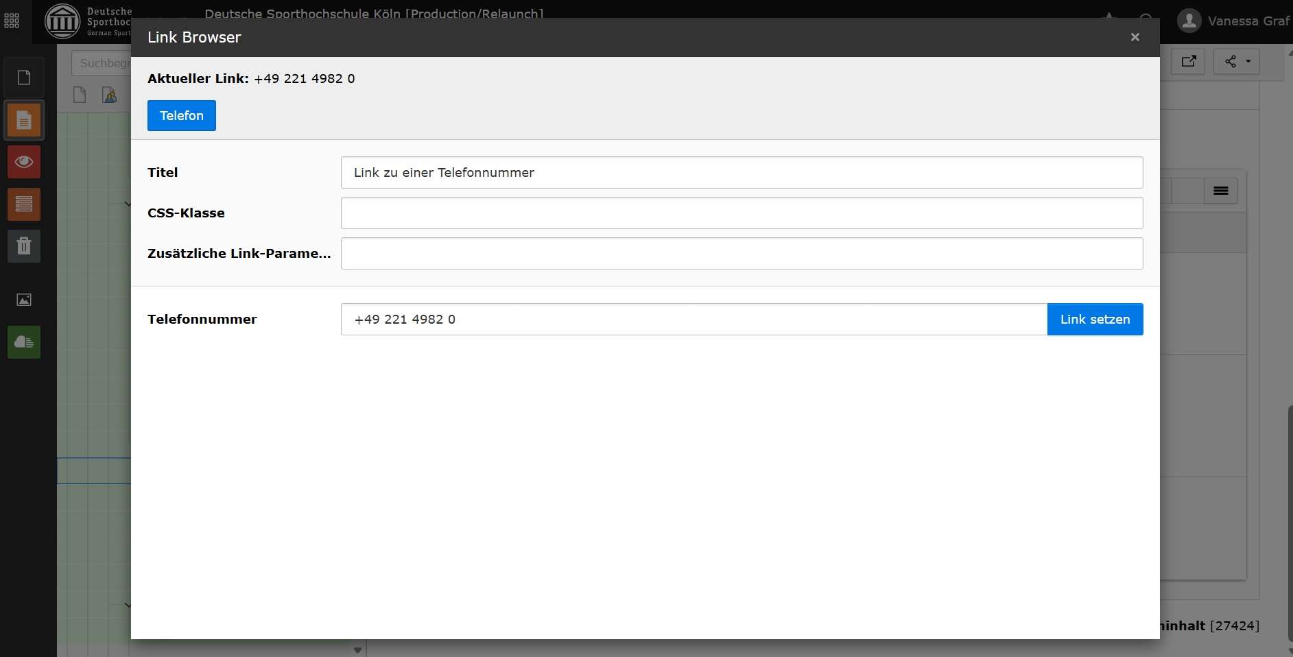 - Telefonnummer einfügen und auf Link setzen klicken