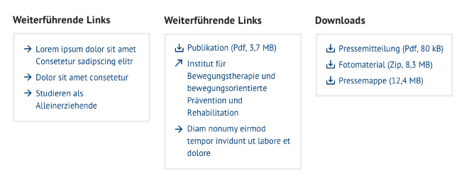 Sammlung weiterführender Informationen, Downloads oder externer Verweise