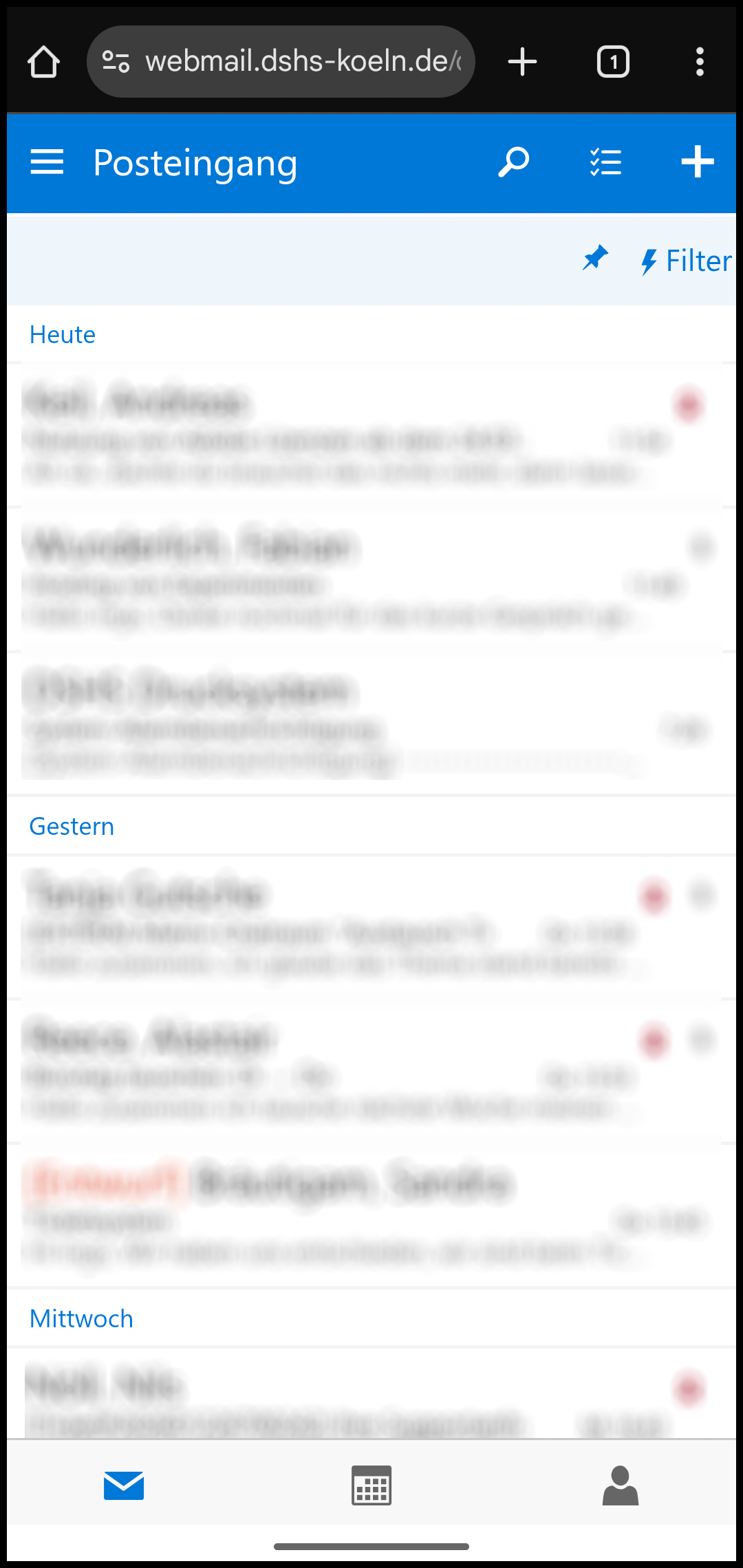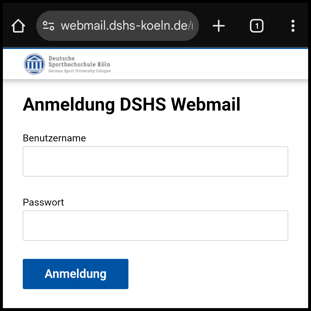 - Öffnen Sie einen Browser Ihrer Wahl und tippen Sie die URL https://webmail.dshs-koeln.de
