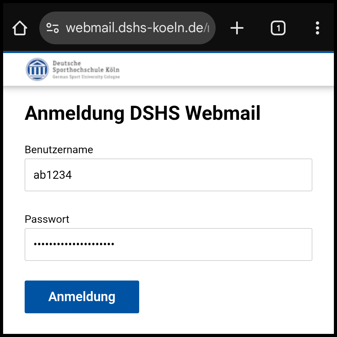 - Nun öffnet sich die Anmeldeseite zum DSHS-Webmail